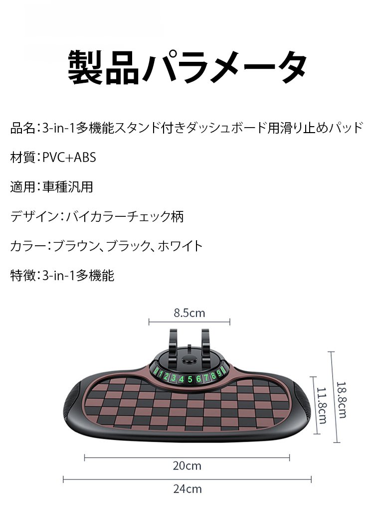 3-in-1多機能スタンド付きダッシュボード用滑り止めパッド